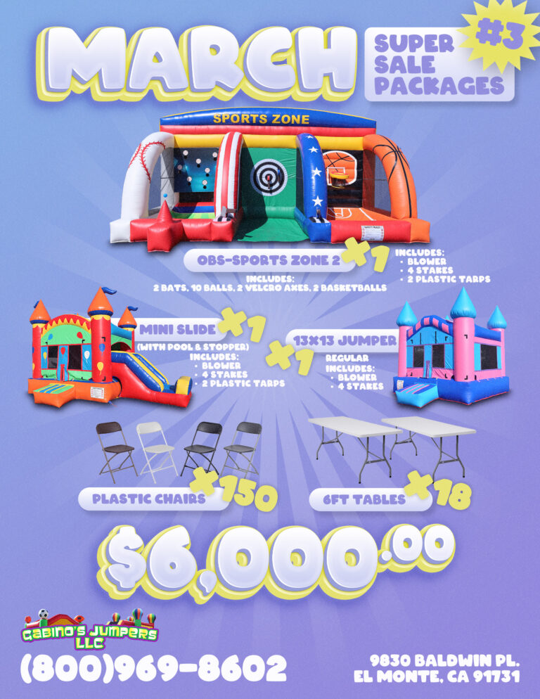 ¡Bienvenidos a Gabino’s Wholesale Jumpers tu socio de confianza en inflables al por mayor! En Gabino’s Wholesale Jumpers, somos líderes en la fabricación y distribución de inflables de alta calidad diseñados para destacar en el mercado. Ofrecemos una amplia variedad de productos, desde castillos inflables y toboganes acuáticos hasta atracciones personalizadas que se adaptan a las necesidades de tu negocio.