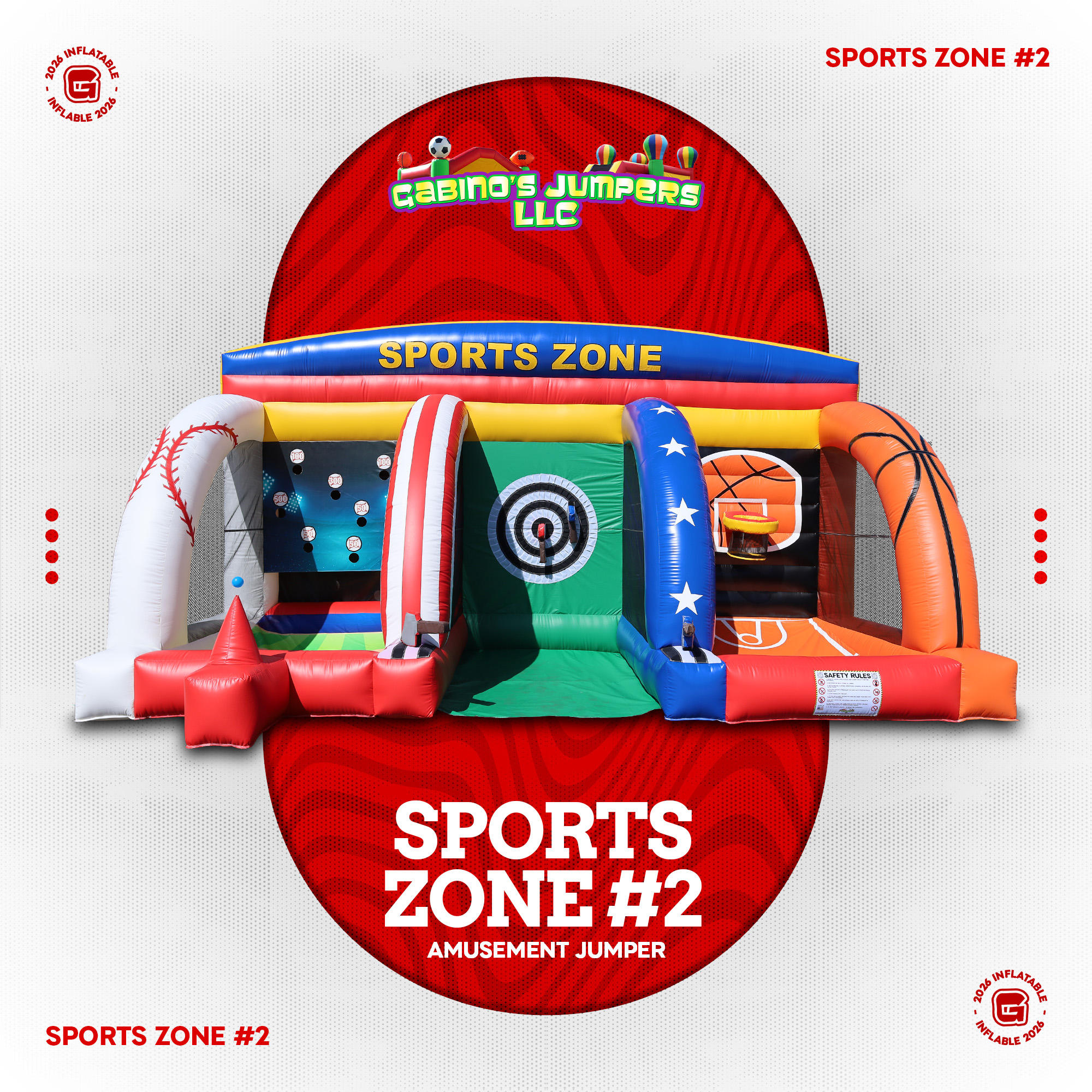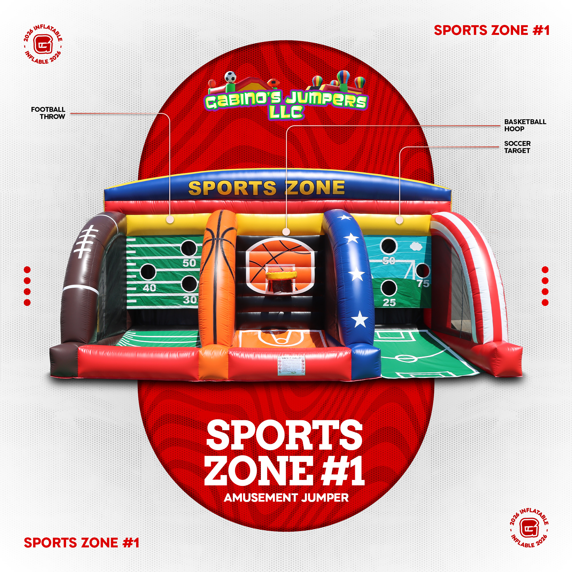Amusement Jumper model Sports Zone 1 will bring the fun to any event. For sale price information please call 323-216-9723.